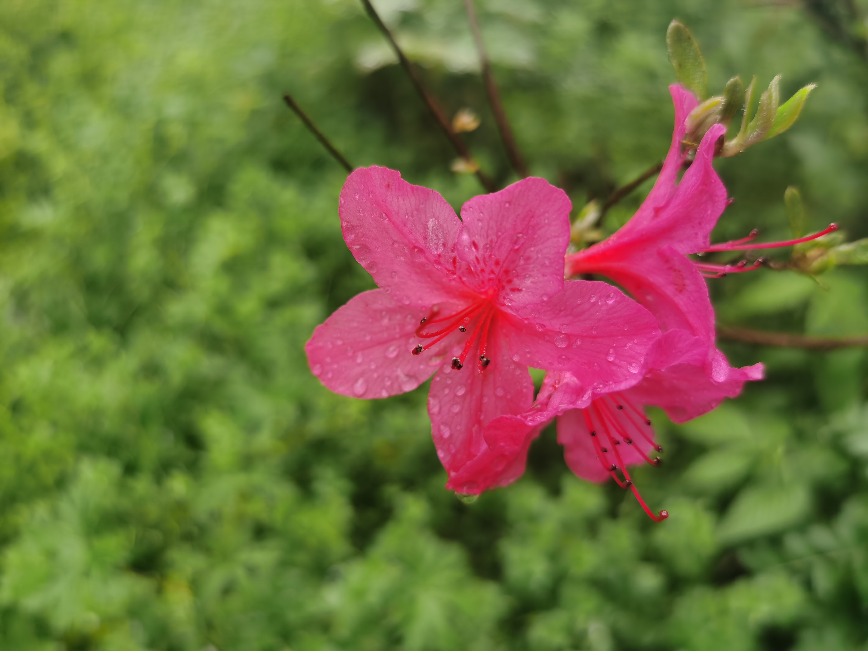 杜鵑紅媚紫藤雨,沃土無聲有白云。