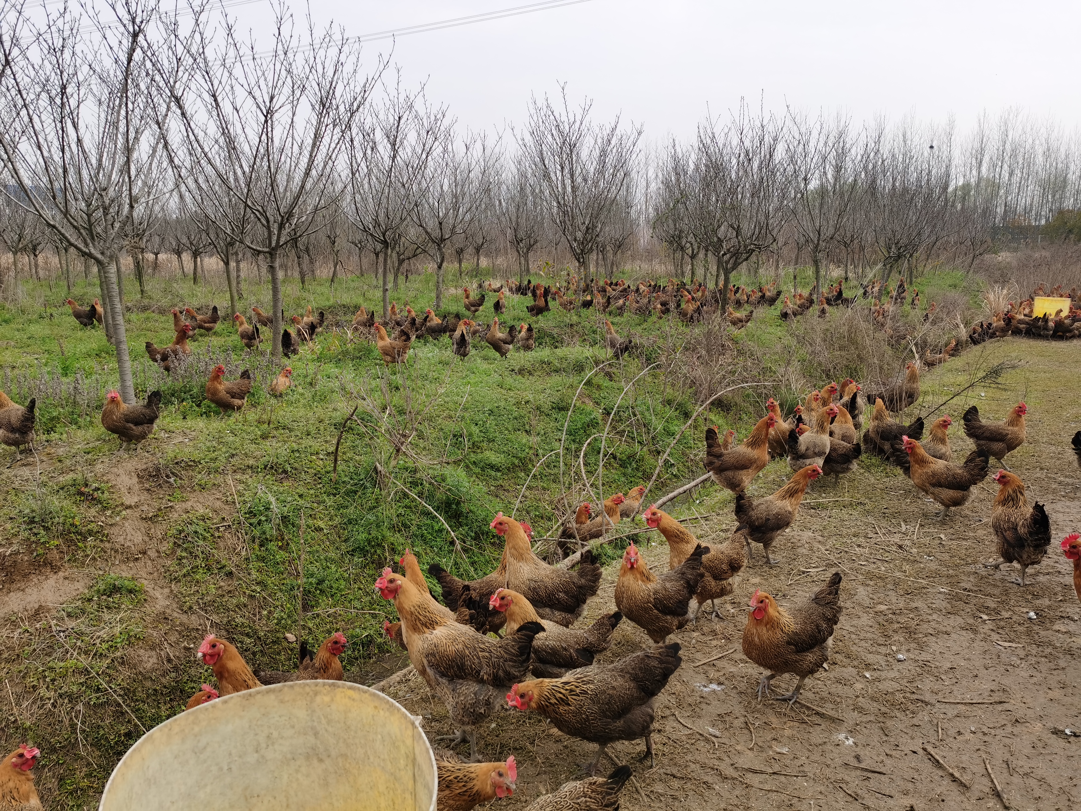 家禽覓食悠悠轉,蝶舞花香鳥唱歌。